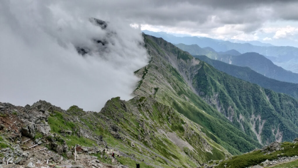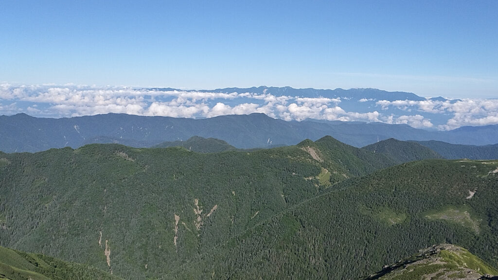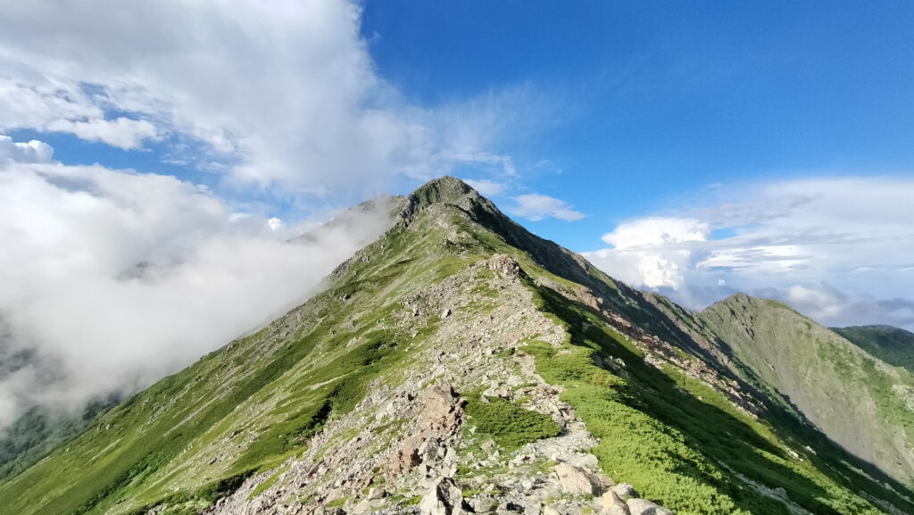 途中、偽ピークではないけど事前によく調べてなかったから、農鳥岳だと思って山頂着いたら西農鳥岳だった。