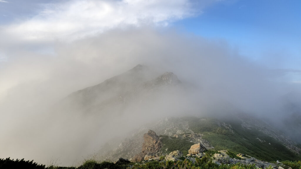 でもその後、雲がもくもくとあがり山頂は白一面に。
