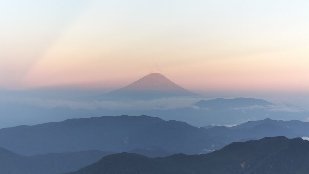 富士山のシルエットや陽射しを受けた赤く染まる北岳が、自然と涙が出てしまうほど、この上なく美しい。