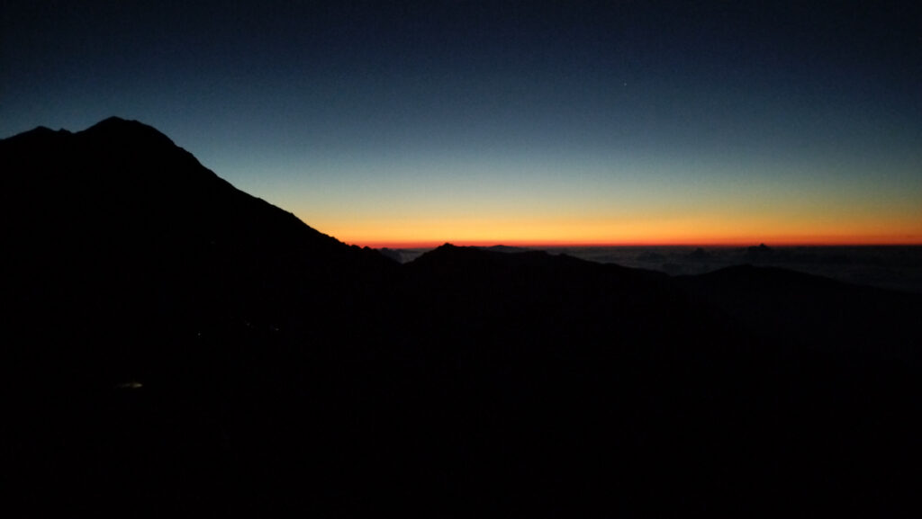 なんとか山頂で日の出前の空の色が変わる「マジックアワー」に間に合う。