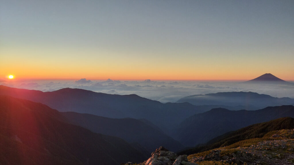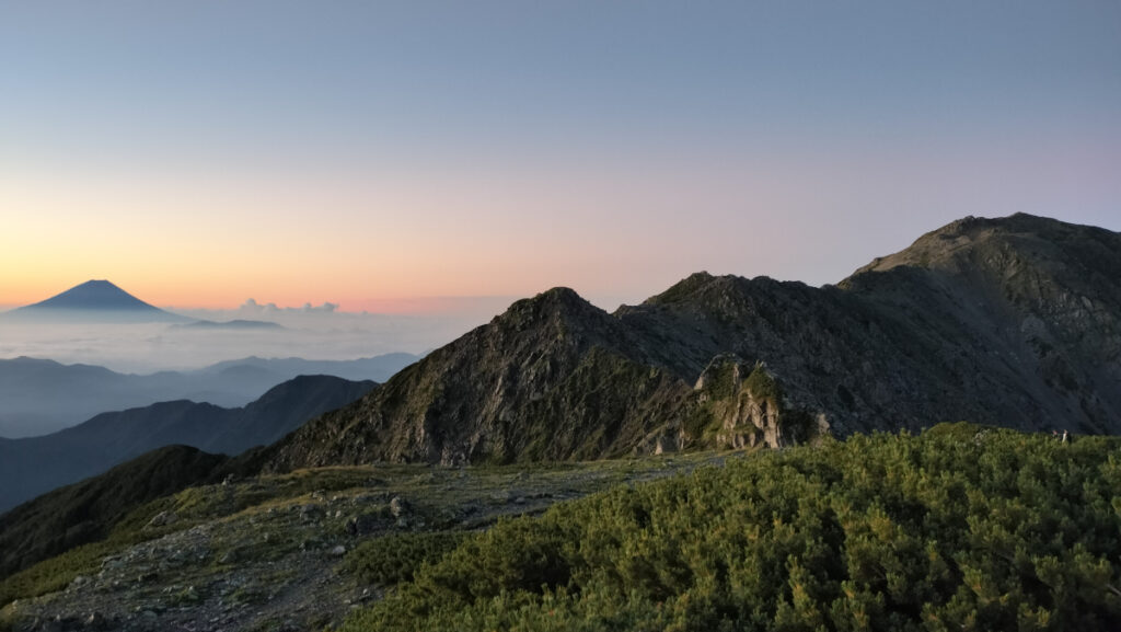 山を始めたころは到底来れないと思ってた白根三山を踏破できたこと、この上ない山脈、富士山、夕日、朝日、すべての山の楽しみが詰め込まれた山行。