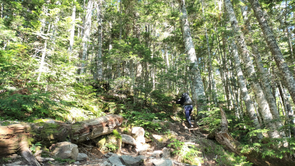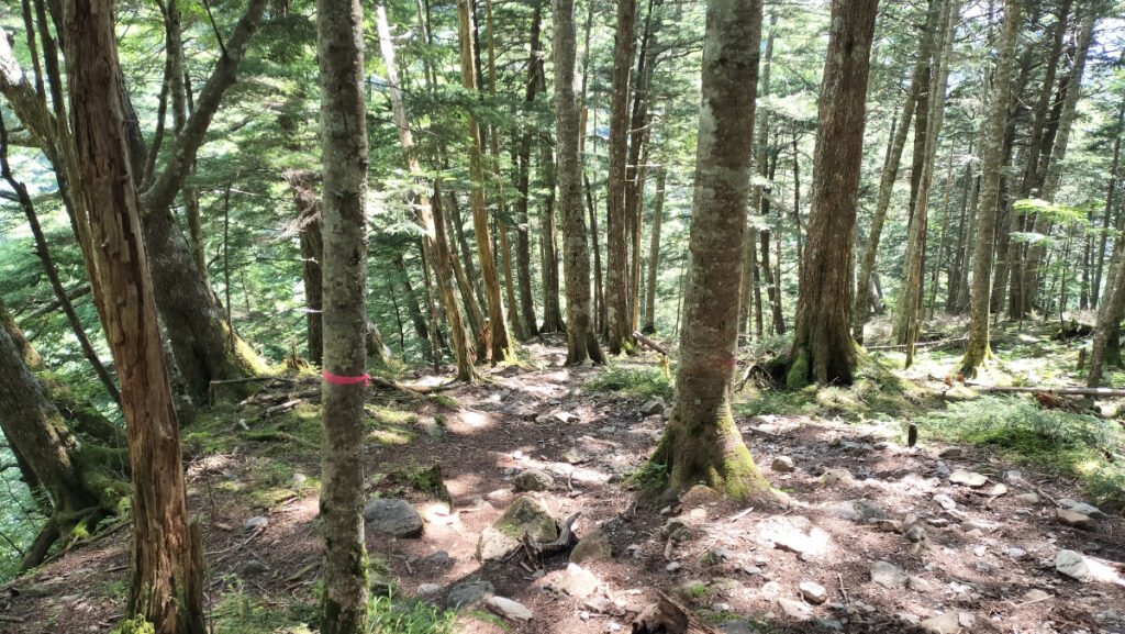 完全な稜線歩きではなく、山の斜面を歩く。