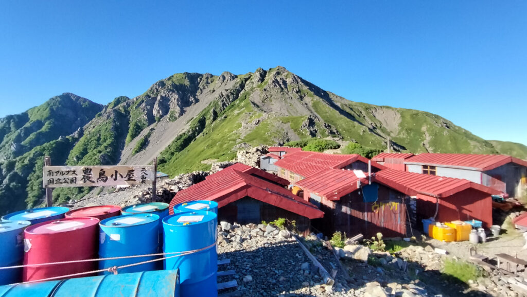 農鳥岳への途中には、色々な逸話をもつ農鳥小屋がある。