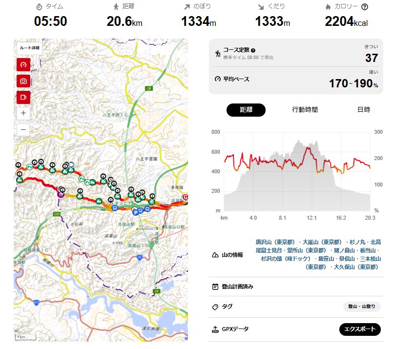 北高尾ルートは、距離や標高差の数字以上にハードで、体力もメンタルも鍛えられるコース。
