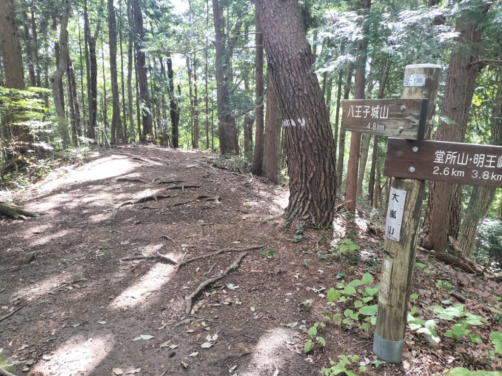 道自体は比較的歩きやすいのですが、ときどき「ここ高尾?」と思うほどの急登が現れます。 おまけにクモの巣に顔から突っ込んでしまうハプニングもあり、テンションは一気にダウン…。